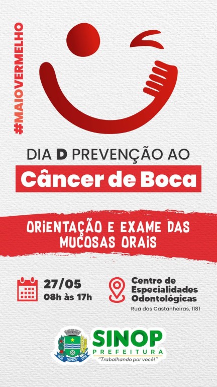 Neste sábado (27), a Secretaria de Saúde, por meio do Centro de Especialidades Odontológicas (CEO), irá promover o dia “D” de prevenção ao câncer de
