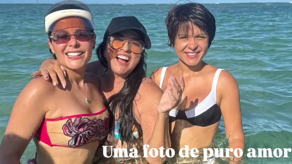 De novo visual, Maiara curte praia com Maraisa, mãe e cunhado: ‘Curtinho’