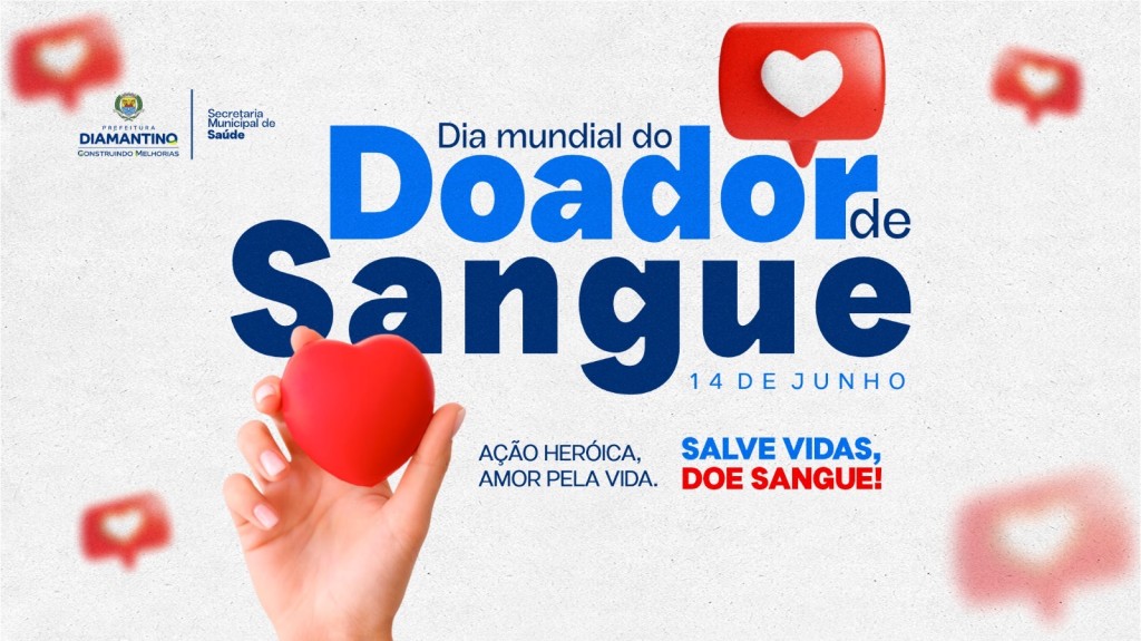 Neste 14 de junho é celebrado o Dia Mundial do Doador de Sangue. A Prefeitura de Diamantino, por meio da Secretaria Municipal de Saúde, se