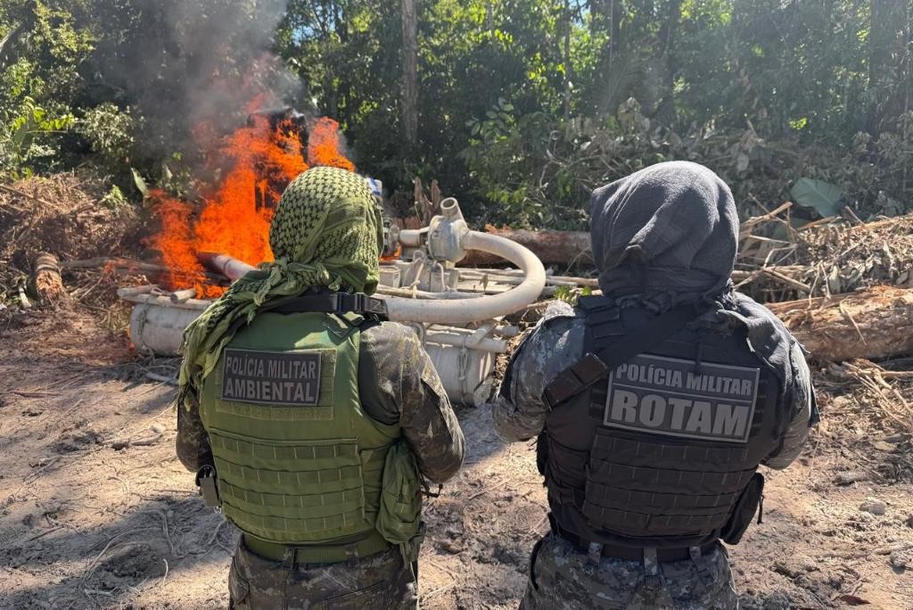 Policiais militares do Batalhão de Proteção Ambiental (BPMPA) e das Rondas Ostensivas Táticas Móveis (Rotam) fecharam, nesta terça-feira (22.7), um garimpo clandestino localizado na zona