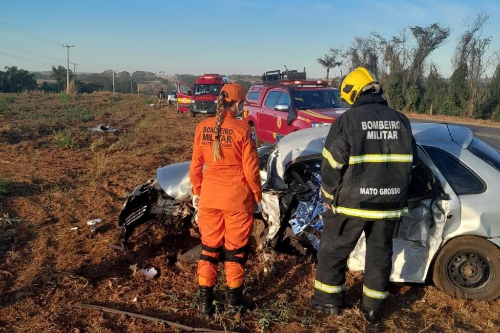 O Corpo de Bombeiros Militar de Mato Grosso (CBMMT) prestou socorro, nesta quarta-feira (23.7), a três vítimas de um acidente de trânsito envolvendo dois veículos