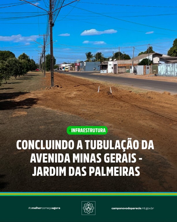 A Prefeitura de Campo Novo do Parecis está em fase de conclusão da obra de tubulação na Avenida Minas Gerais, localizada no bairro Jardim das