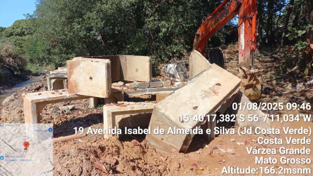 A Prefeitura de Várzea Grande informa que estão em andamento as obras na Avenida Elvira Monteiro, no bairro Costa Verde, para reconstrução da travessia sobre