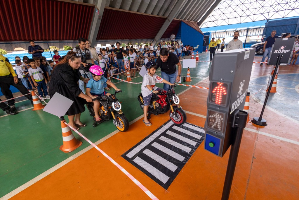 A Escola Municipal Professora Evânia Rodrigues da Silva, na região do Jardim Tropical, recebeu, nesta quinta-feira (18), a inauguração da Escolinha de Trânsito, um projeto