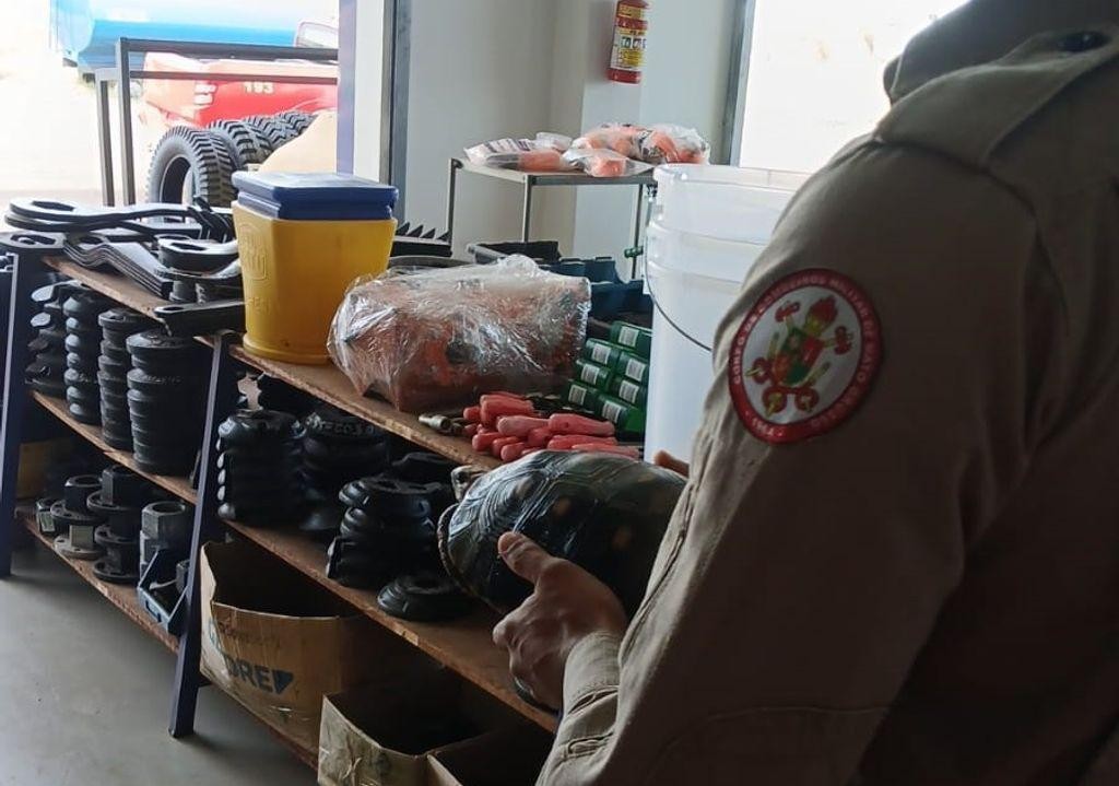 O Corpo de Bombeiros Militar de Mato Grosso (CBMMT) realizou, na tarde desta sexta-feira (26.9), a captura de um jabuti encontrado em uma loja de