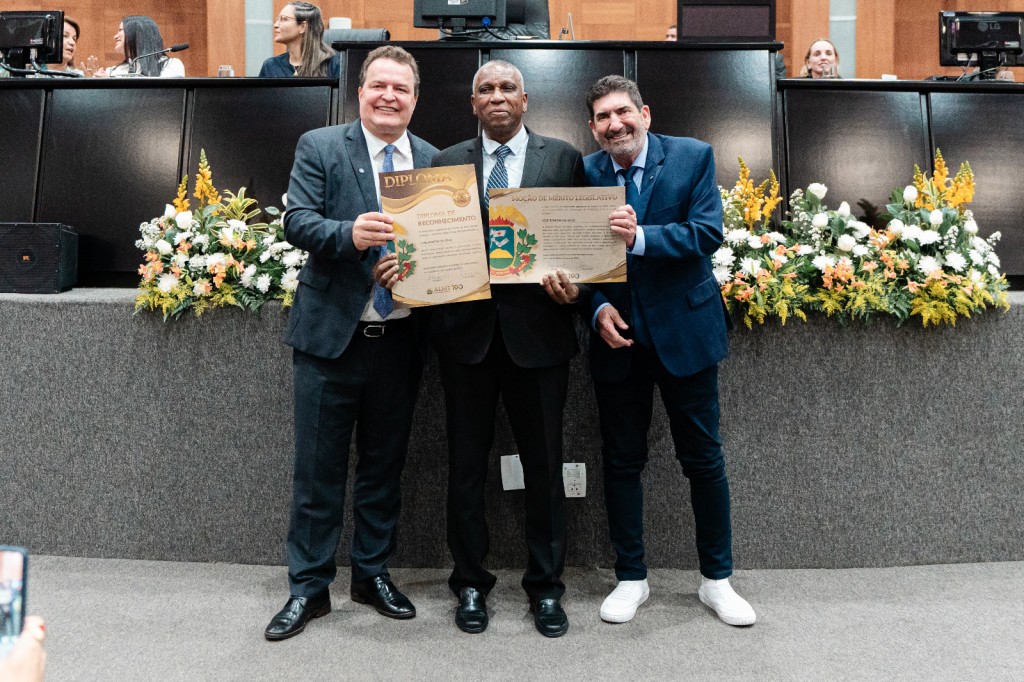 Em sessão especial realizada nesta quarta-feira (29), o presidente da Assembleia Legislativa de Mato Grosso (ALMT), deputado Max Russi (PSB), ao lado do primeiro-secretário, deputado