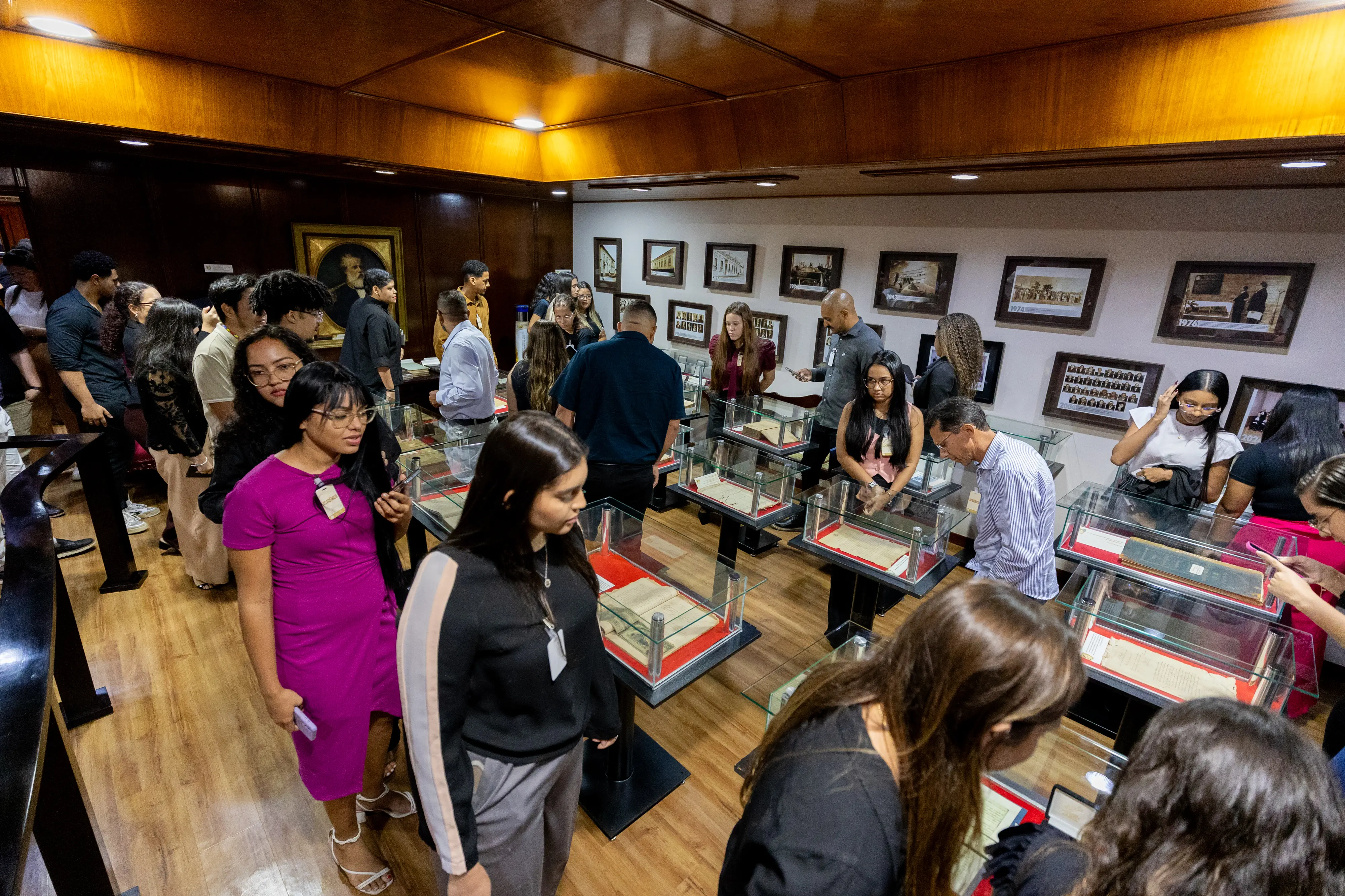 Acadêmicos do curso de Direito da Universidade de Cuiabá, campus Beira Rio, participaram na tarde desta quarta-feira (4) de uma imersão no Poder Judiciário. A turma, composta por 45 estudantes, participou de uma intensa programação elaborada por meio do Projeto Nosso Judiciário. Coube ao juiz auxiliar da Presidência do Tribunal de Justiça de Mato Grosso (TJMT), Túlio Duailibi Alves Souza, ministrar uma palestra de boas-vindas ao grupo no Espaço Memória do Judiciário.