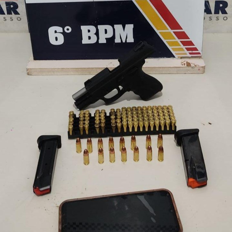 Policiais militares do 6º Batalhão apreenderam um adolescente, de 16 anos, por posse irregular de arma de fogo, na noite deste domingo (18.5), em Cáceres. Com o menor, que confessou participação em um triplo homicídio, na última semana, a PM apreendeu uma pistola, dois carregadores e 100 munições.