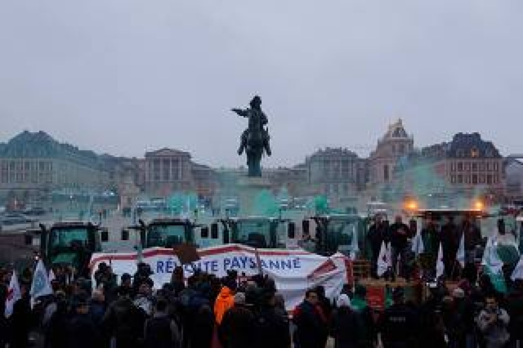 Um dos pontos de maior visibilidade foi a Place d’Armes, em frente ao Palácio de Versalhes, onde cerca de cem agricultores levaram tratores, acenderam fogueiras e exibiram um cartaz com os dizeres “A revolta camponesa recomeça em Versalhes”. O local foi escolhido como referência histórica à Revolução Francesa e para chamar a atenção direta do presidente Emmanuel Macron.