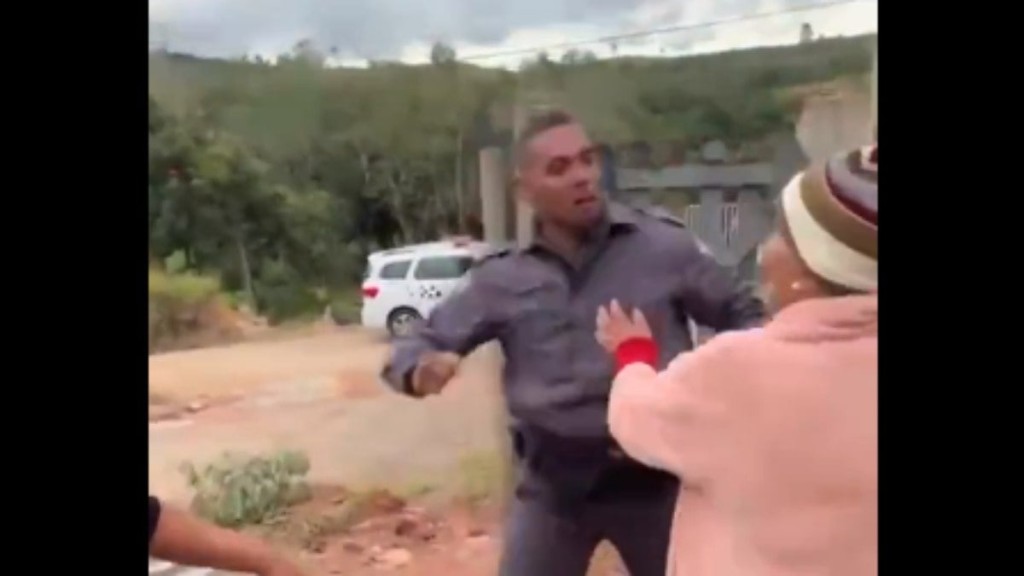 Reprodução – 31.05.2023 PM agride idosa de 80 anos no interior de SP Uma idosa de 80 anos e um homem rendido e algemado foram