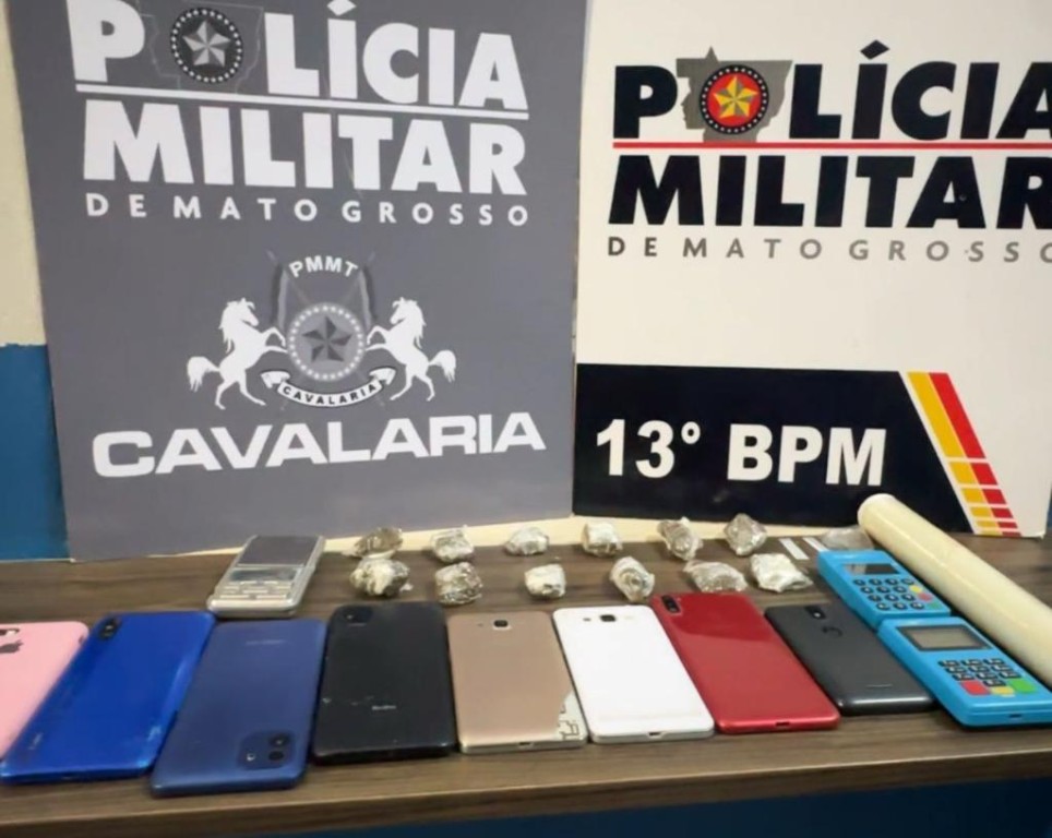 Policiais militares 1º Esquadrão Independente de Policiamento Montado prenderam dois homens, de 26 e 31 anos, por tráfico de drogas, nesta quarta-feira (19.3), no município de Lucas do Rio Verde (333 km de Cuiabá). Os militares apreenderam 12 porções de maconha, duas de cocaína, oito aparelhos celulares, duas máquinas de cartão e uma balança de precisão.