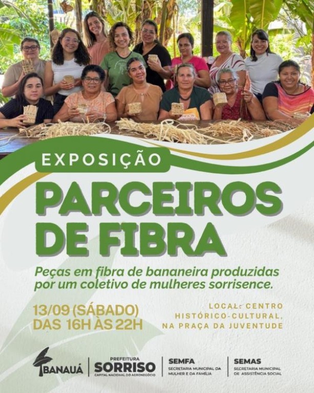 No próximo sábado, dia 13, o Centro Histórico Cultural Benjamin Raiser, será palco de uma exposição que combina sustentabilidade com saúde mental e geração de renda. No local serão expostos os trabalhos desenvolvidos no programa “Parceiros de Fibra” que há três meses vem transformando a vida de 20 mulheres sorrisense. O Parceiros de Fibra viabiliza a produção de peças ecológicas utilizando a fibra da bananeira como matéria-prima.