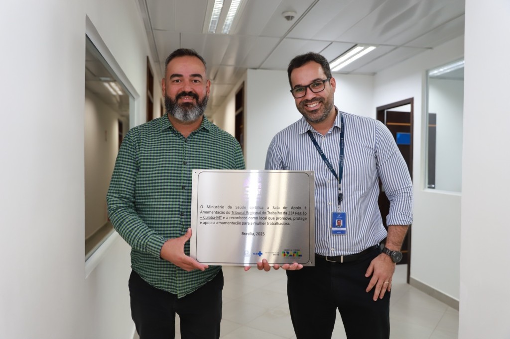 A Secretaria de Estado de Saúde (SES-MT) entregou, nesta terça-feira (26.8), a placa de certificação do Ministério da Saúde à equipe do Tribunal Regional do Trabalho da 23ª Região (TRT-MT), pela implantação da Sala de Apoio à Amamentação em sua sede no Centro Político Administrativo, em Cuiabá.