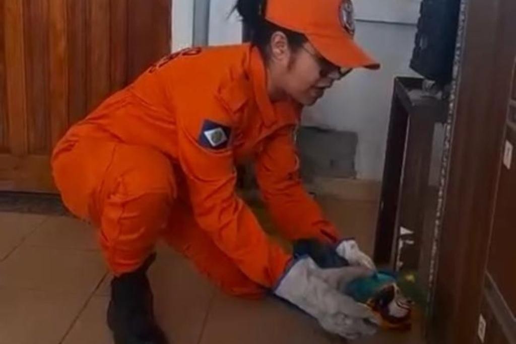 A arara foi resgatada com segurança e, em seguida, encaminhada ao Centro de Triagem e Reabilitação de Animais Silvestres (CETAS) para receber os cuidados necessários.