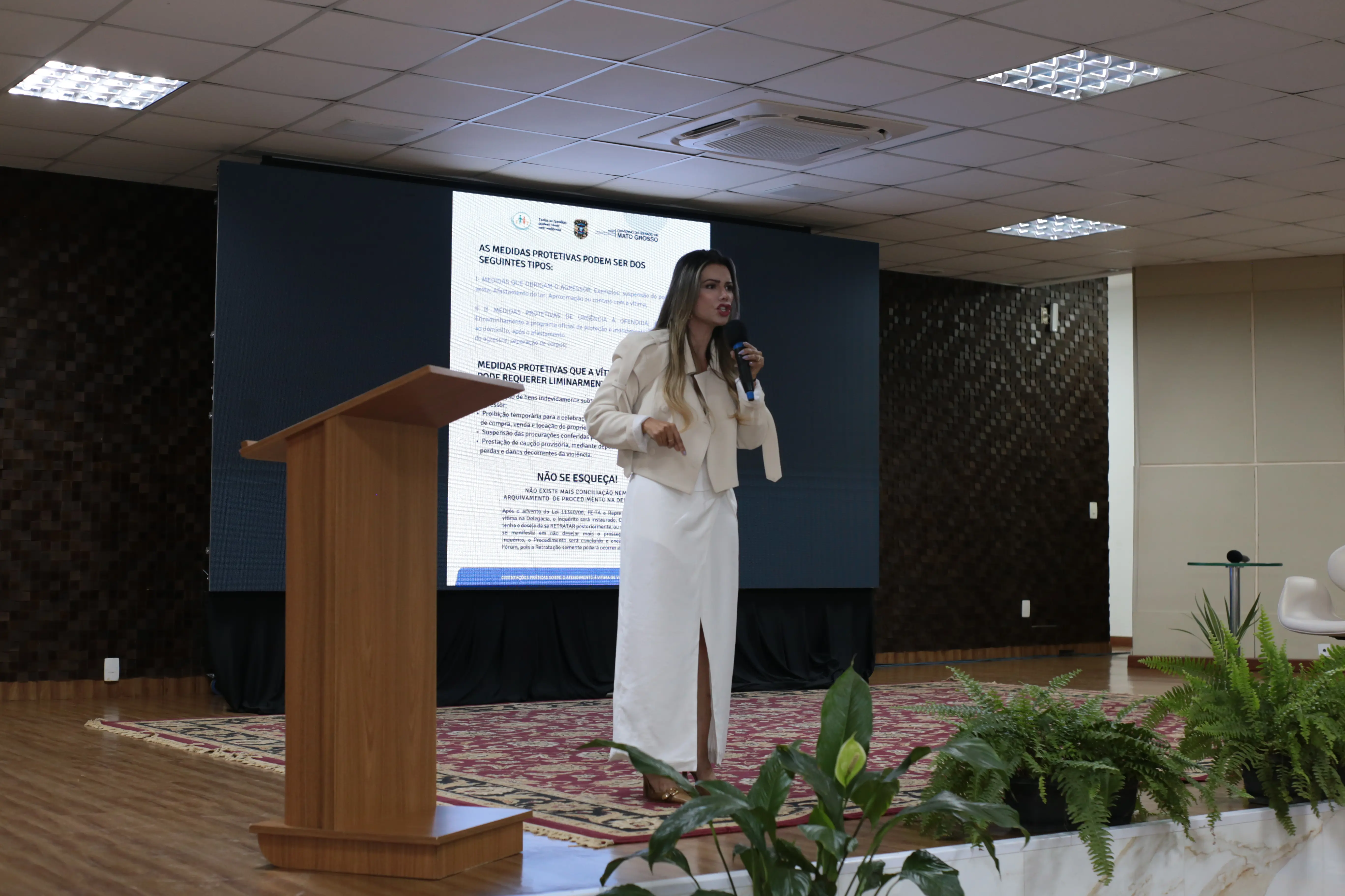 As denúncias podem ser feitas pelos canais das Polícias Civil (197) e Militar (190), além do Disque 180 (específico para violência doméstica) e Disque 100 (para Direitos Humanos). Ela explicou também que é possível pedir uma Medida Protetiva online e ressaltou a facilidade de solicitar uma medida protetiva pelo aplicativo SOS Mulher MT, disponível nas lojas de aplicativos de qualquer aparelho celular.