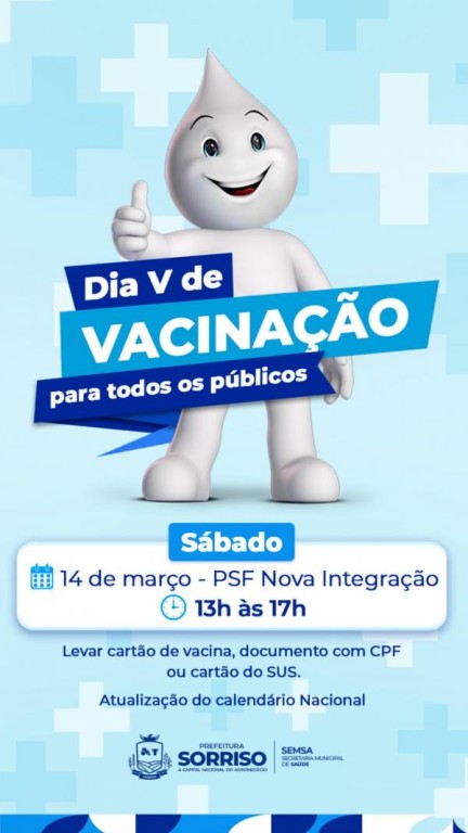 O horário alternativo integra o planejamento da campanha de vacinação contra a influenza, que será intensificada nos meses de abril e maio. Em Sorriso, a programação do Dia V iniciou ainda no sábado passado, dia 7. Com a iniciativa, o Município busca aumentar a cobertura vacinal, atualizar esquemas em atraso e garantir mais proteção à população, alinhada às metas estabelecidas pelo Ministério da Saúde.