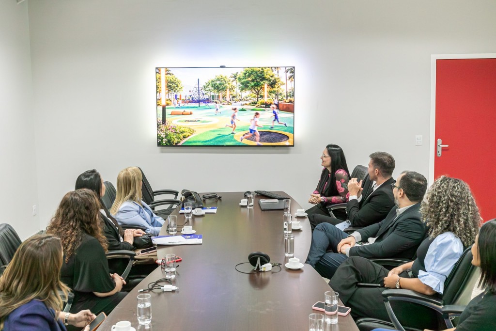 A foto ilustra uma imagem de um auditório no qual um grupo de pessoas estão sentadas acompanhando uma palestra.