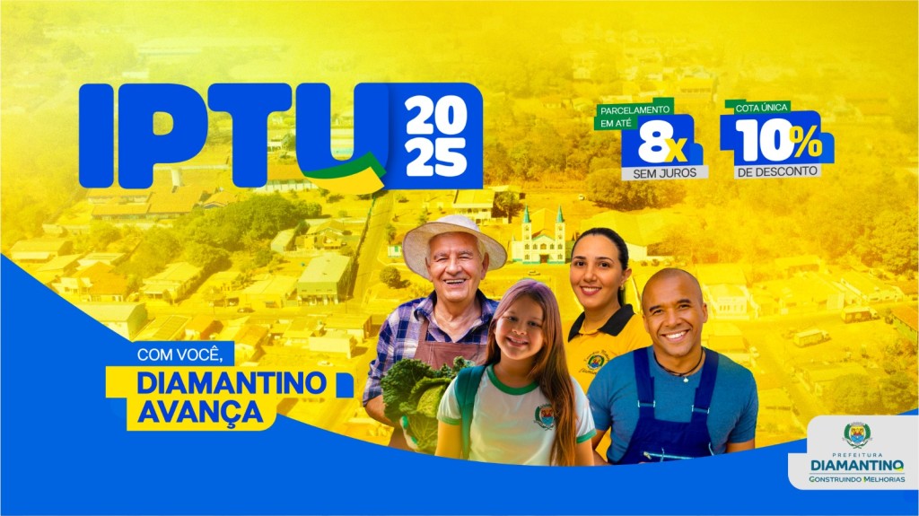 A Prefeitura de Diamantino anunciou o lançamento do Imposto sobre a Propriedade Predial e Territorial Urbana (IPTU) referente ao exercício de 2025. De acordo com o Decreto nº 131/2025, publicado no dia 01 de abril, os contribuintes têm a opção de pagar o tributo em cota única com 10% de desconto até o dia 20 de maio ou parcelar o valor em até 8 vezes mensais.