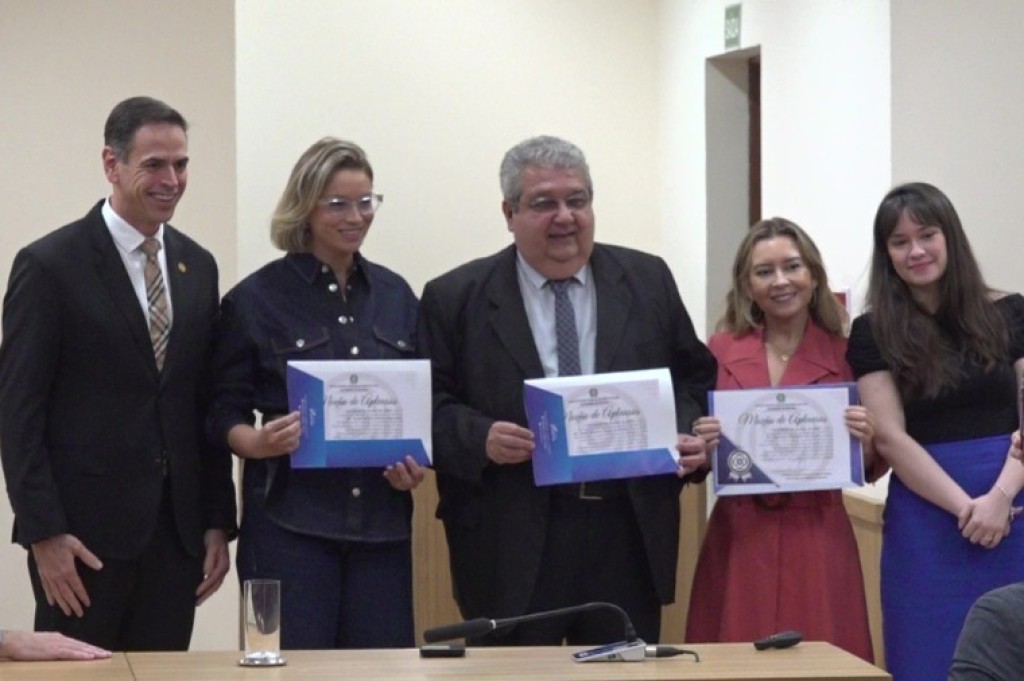 Em reconhecimento à atuação destacada em prol da justiça e da cidadania, a Faculdade de Direito (FD) da Universidade Federal de Mato Grosso (UFMT) entregou, nesta segunda-feira (09), Moção de Aplausos ao procurador de Justiça Paulo Roberto Jorge do Prado, titular da Especializada na Defesa da Criança e do Adolescente; à subprocuradora-geral de Justiça de Planejamento e Gestão, Anne Karine Louzich Hugueney Wiegert; e à promotora de Justiça da 7ª Promotoria Criminal, Marcelle Rodrigues da Costa e Faria.As honrarias foram aprovadas por unanimidade pela Congregação da Faculdade de Direito, e a entrega foi realizada pelo diretor da Faculdade de Direito da UFMT, professor Carlos Eduardo Silva e Souza. “Essas moções são uma forma de reconhecimento”, destacou o diretor.Ele explicou ainda que as Moções de Aplausos têm como objetivo fortalecer o diálogo institucional e fomentar parcerias conjuntas. “Esta homenagem é uma forma de agradecimento por todas essas oportunidades e pelo diálogo tão intenso entre a Faculdade de Direito e o Ministério Público”, completou.Representando os homenageados, a promotora de Justiça Marcelle Rodrigues da Costa e Faria agradeceu a distinção. “Estou muito emocionada em receber essa homenagem. Sou egressa da Universidade Federal. Muito obrigada, em nome de todos nós”, declarou.A parceria constante entre o Ministério Público de Mato Grosso (MPMT) e a academia já rendeu à instituição e ao Centro de Estudos e Aperfeiçoamento Funcional (Ceaf) — Escola Institucional do MPMT — uma Moção de Aplausos.Além do MPMT e do Ceaf, também já foram agraciados com a honraria o ex-procurador-geral de Justiça, Deosdete Cruz Junior, e o procurador de Justiça e coordenador do Ceaf, Antonio Sergio Cordeiro Piedade.
