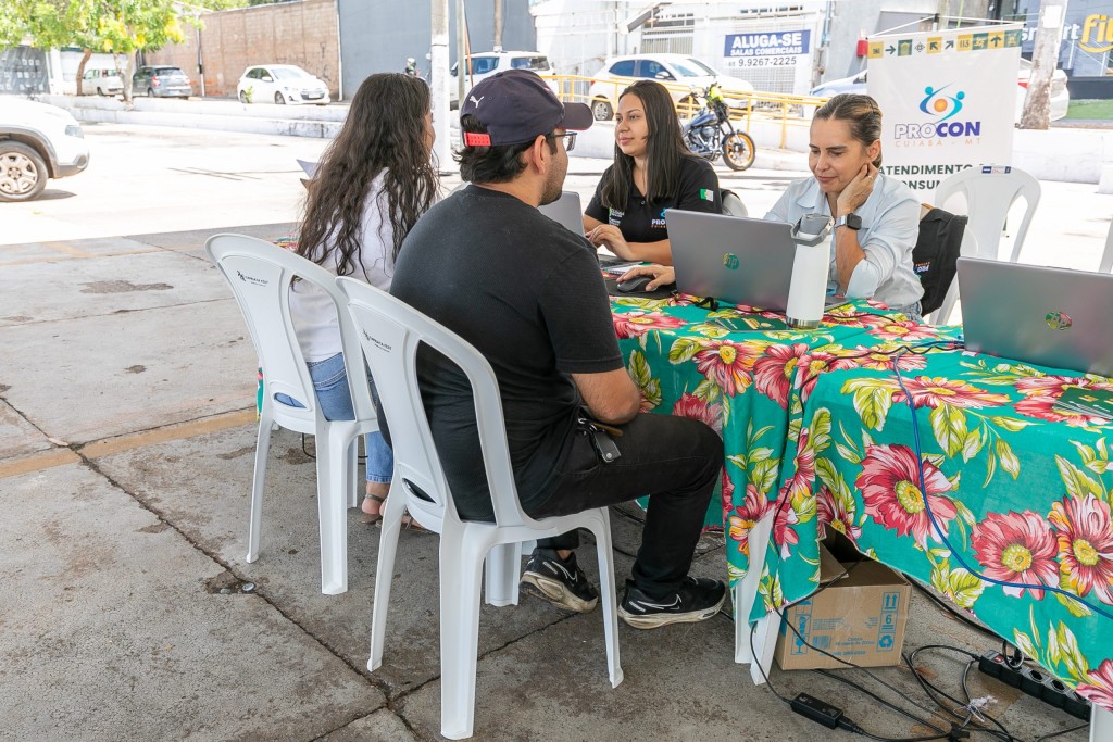 A Águas Cuiabá, que também enfrenta demandas de reclamações, é parceira do mutirão, presente com a van caracterizada. Algumas das situações são intermediadas ali mesmo, com apoio do mutirão do Procon.