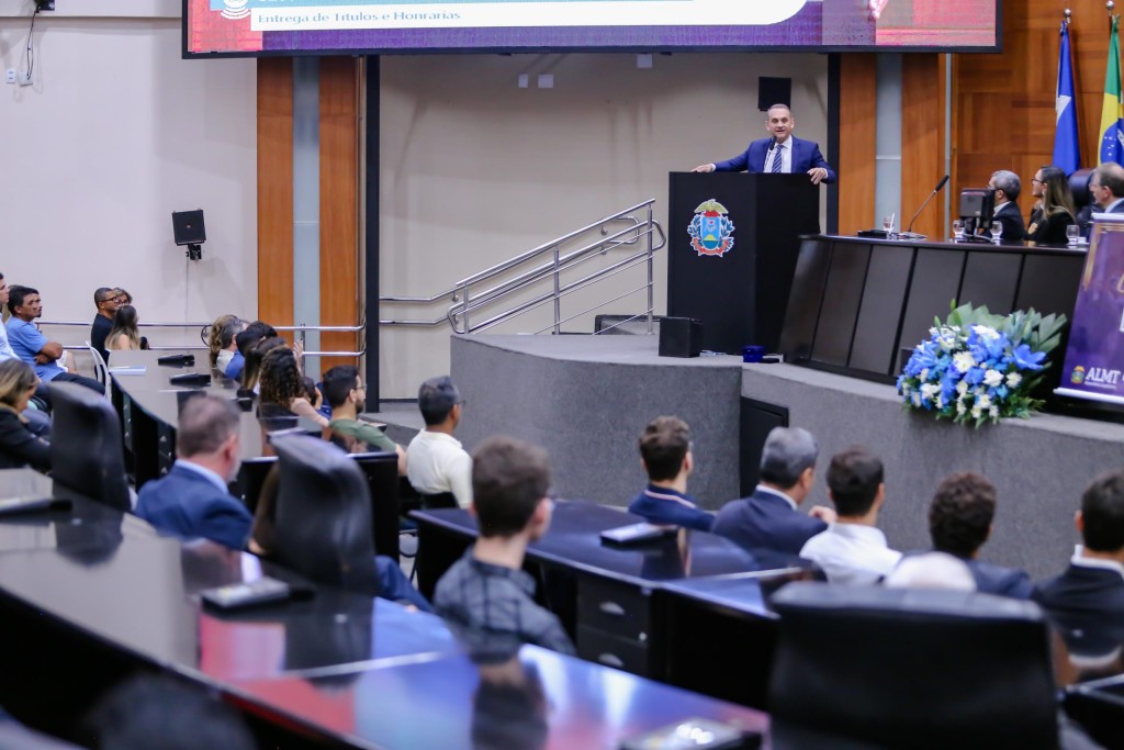 A Assembleia Legislativa de Mato Grosso (ALMT), por iniciativa do deputado estadual Wilson Santos (PSD), realizou uma sessão especial nesta segunda-feira (2), em reconhecimento ao mérito de personalidades que contribuíram para o desenvolvimento social e econômico do estado. Na cerimônia, foram entregues as comendas Filinto Müller, Marechal Cândido Rondon, Dante de Oliveira, títulos de Cidadão Mato-Grossense e moções de aplausos, representando o reconhecimento de todo o povo mato-grossense.
