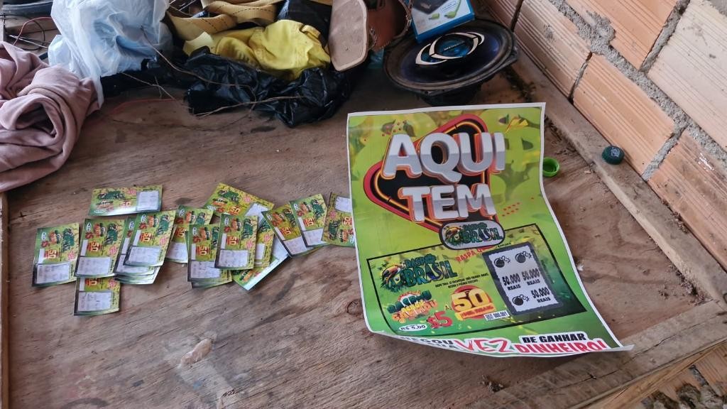 Também foi autorizada a apreensão e o descarte do material de raspadinhas, que somava centenas de bilhetes e banners de propaganda apreendidos durante as diligências.