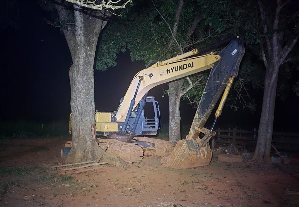 Os investigadores foram para outra propriedade pertencente ao mesmo produtor rural, que também já era monitorada pela Polícia Civil, e visualizaram, com auxílio do drone, 22 contêineres, mangueiras e bombas utilizadas para transferência de combustíveis, além de uma escavadeira hidráulica e um trator.
