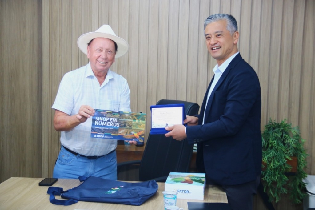 A Prefeitura de Sinop, por meio da Secretaria Municipal de Desenvolvimento Econômico (Sedec) e da Secretaria Municipal de Governo e Planejamento Estratégico, recebeu, na tarde de ontem (2), o cônsul-geral adjunto do Japão, Jiro Takamoto. A agenda, que também contou com a articulação do empresário Jorge Yanai, teve o objetivo de apresentar o potencial econômico de Sinop e região, com vistas a fortalecer vínculos diplomáticos e atrair investimentos japoneses.