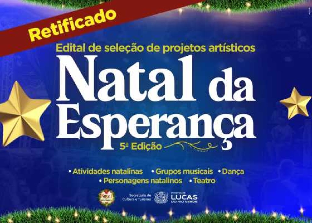 A Prefeitura de Lucas do Rio Verde, por meio da Secretaria Municipal de Cultura e Turismo, publicou nesta sexta-feira (3) a Retificação nº 02 do Edital nº 006/2025, referente ao chamamento público para seleção de