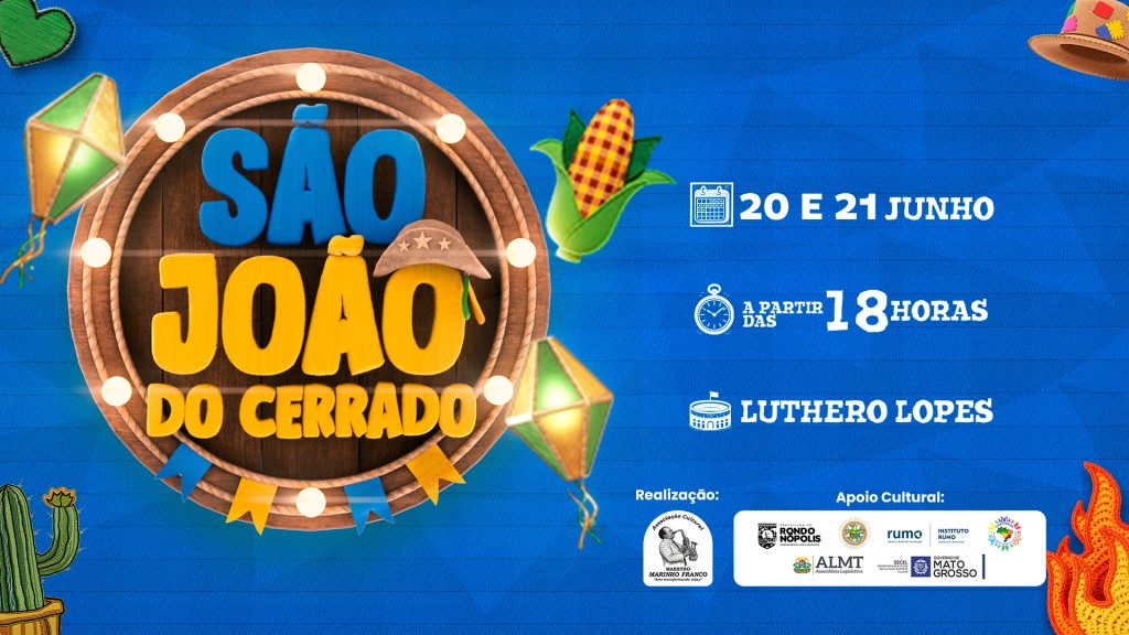 Realizado pela Associação Cultural Maestro Marinho Franco, o São João do Cerrado conta com apoio total da Prefeitura Municipal de Rondonópolis, por meio da Secretaria Adjunta de Cultura e Juventude. O evento chega para valorizar a cultura popular, fomentar o turismo e oferecer entretenimento de qualidade à população. A programação é diversificada e conta com apresentações culturais, shows musicais, comidas típicas e a tradicional competição de quadrilhas que inclui a semifinal do Festrilha.