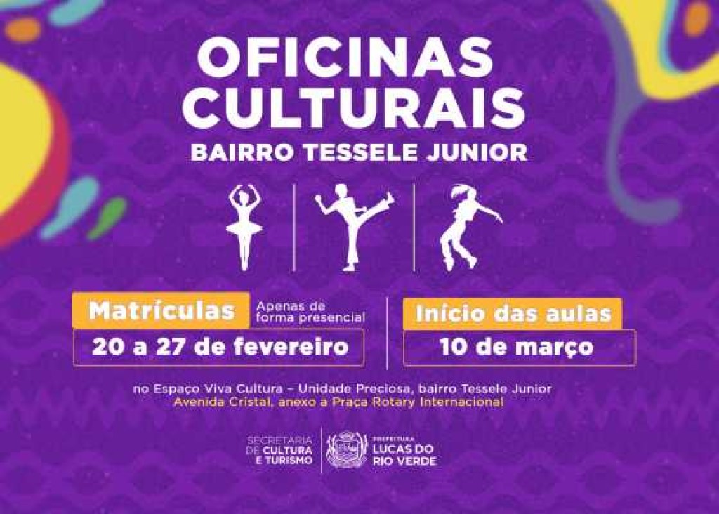 A Secretaria de Cultura e Turismo de Lucas do Rio Verde está ampliando as oportunidades de aprendizado cultural com a abertura de novas vagas para as oficinas de Ballet, Capoeira e Danças Urbanas, que serão realizadas exclusivamente no bairro Tessele Junior.