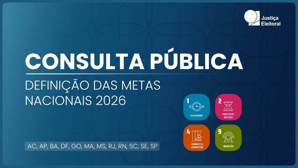 O Tribunal Regional Eleitoral de Mato Grosso (TRE-MT) convida toda a sociedade a participar da Consulta Pública das Metas Nacionais do Poder Judiciário para 2026. A iniciativa busca ouvir cidadãs e cidadãos, integrantes da comunidade jurídica, representantes de instituições públicas e privadas e demais interessadas(os) no aperfeiçoamento do Poder Judiciário.