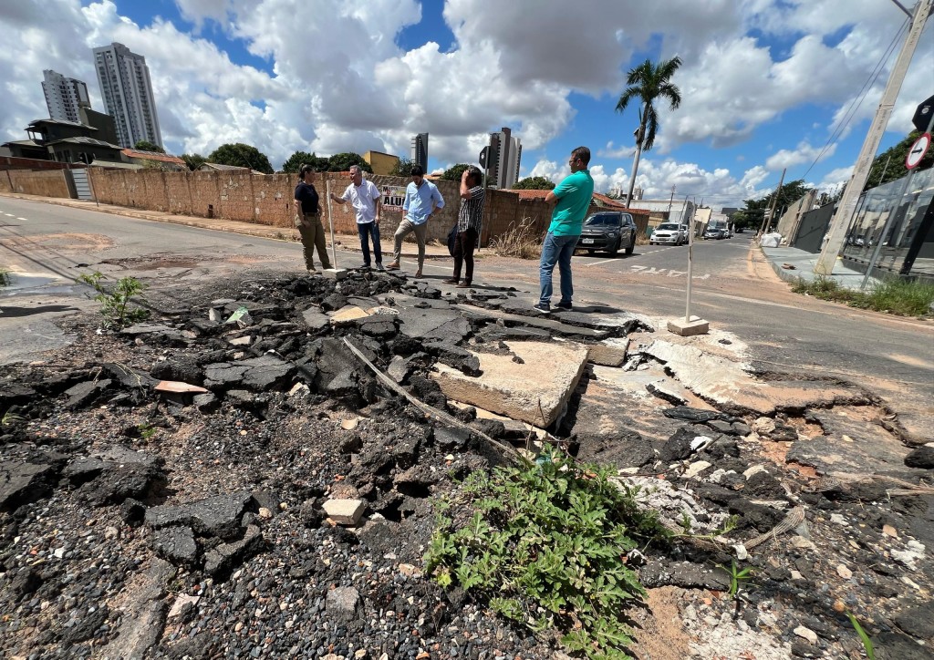 A vice-prefeita e secretária de Assistência Social, Direitos Humanos e Inclusão de Cuiabá, coronel Vânia Rosa e o secretário municipal de Obras Públicas, Reginaldo Teixeira, realizaram na terça-feira (17) uma visita técnica à Rua dos Crisântemos, no cruzamento com a Rua das Margaridas, no bairro Jardim Cuiabá. O local sofreu a abertura de uma fissura no solo, causada por infiltração decorrente de sobrecarga no sistema de drenagem pluvial.